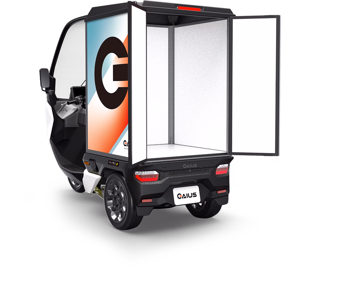 貨箱容量1000公升、載重可達200公斤,一次載足比二輪機車多5倍的貨量。三面箱門可依企業需求提供不同款式做選擇;外觀可客製化打造出企業色系及形象識別之專屬貨箱。